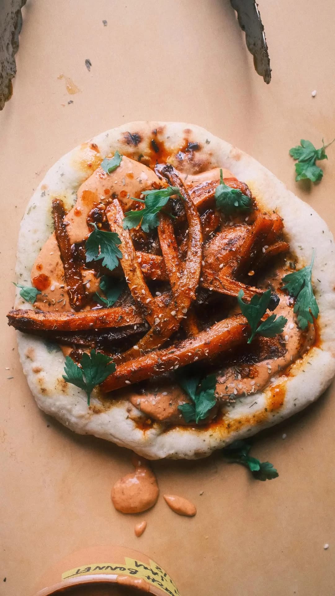 Golden Carrot & Harissa Red Bean Hummus Flatbreads